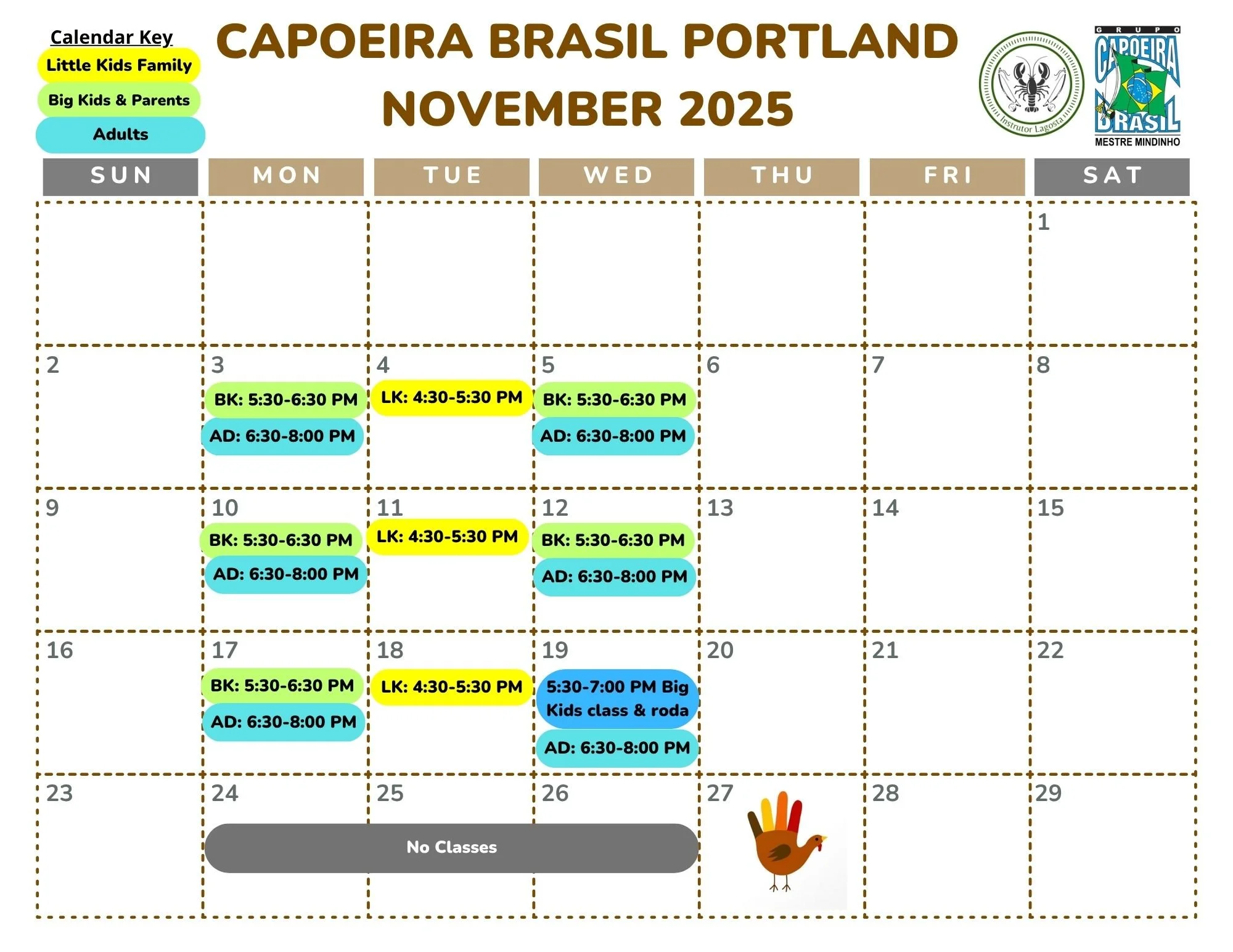 Big Kids (age 7-11): Mondays & Wednesdays 5:30-6:30 PM